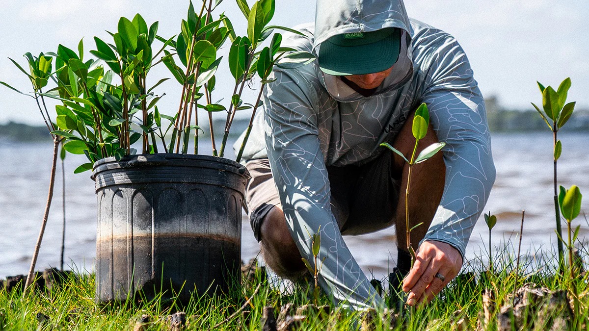 Planting mangroves to improve water quality, providelife for thousands of marine life species, and stabilizeour coast to trap carbon and keep our planet healthy.